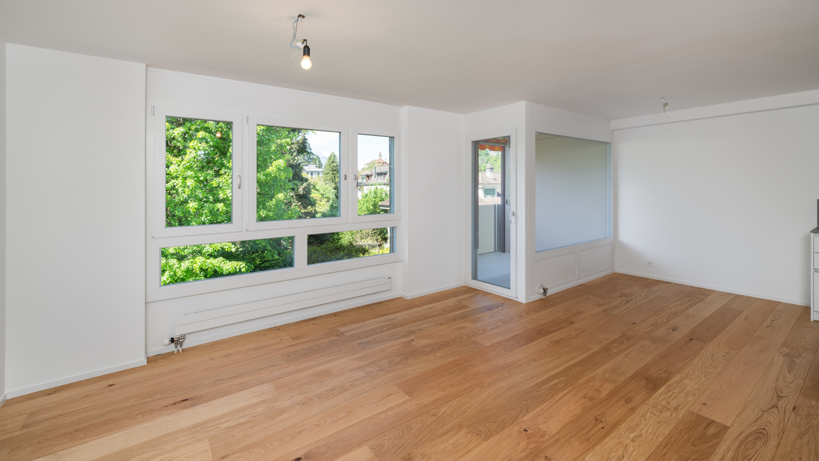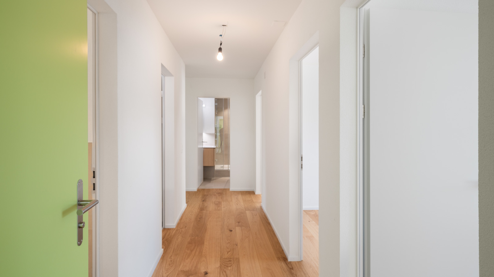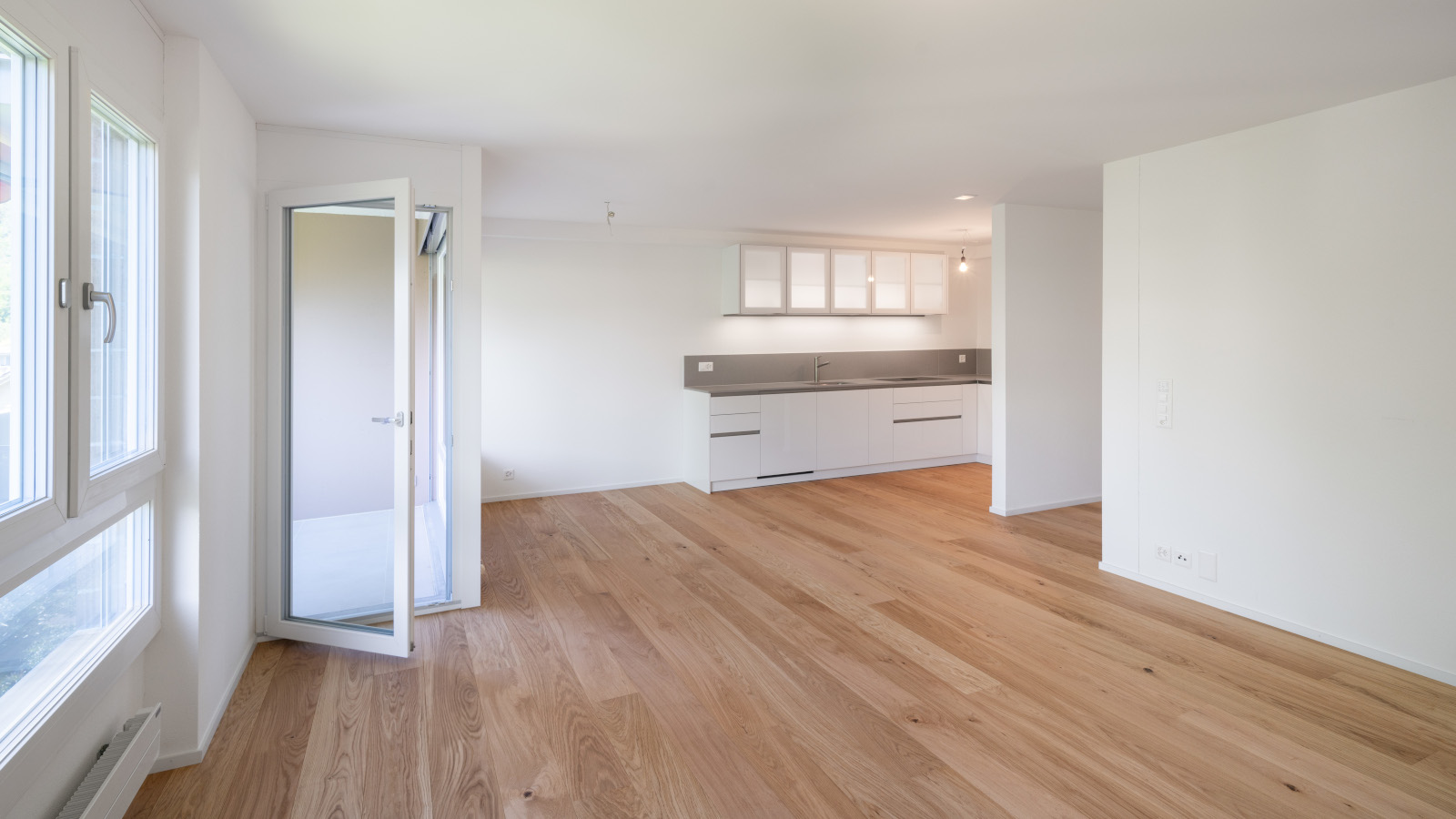 In der Wohnung (ausser in den Nasszellen) wurde ein Eichen-Parkettboden (Landhausdiele) verlegt.
