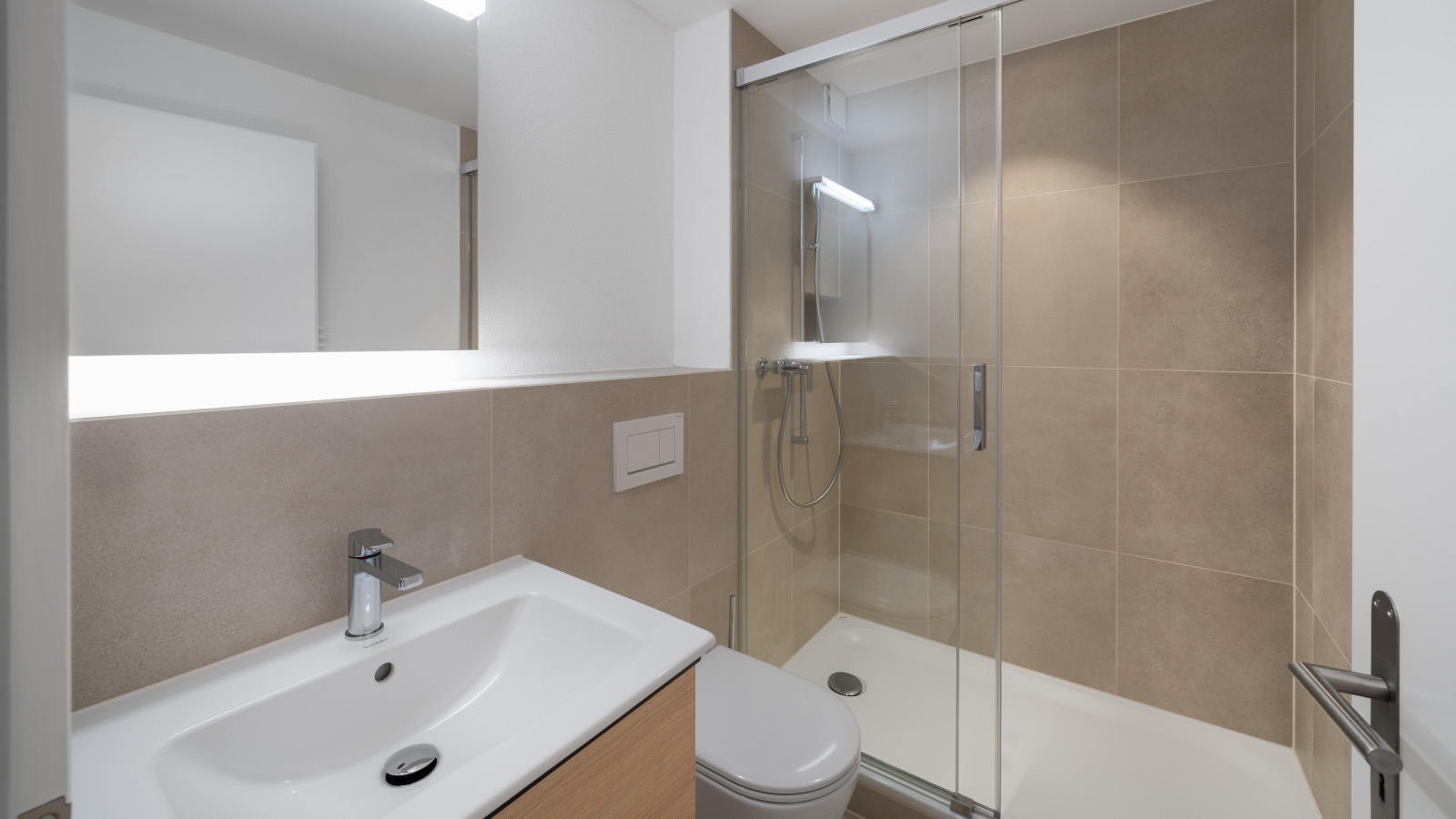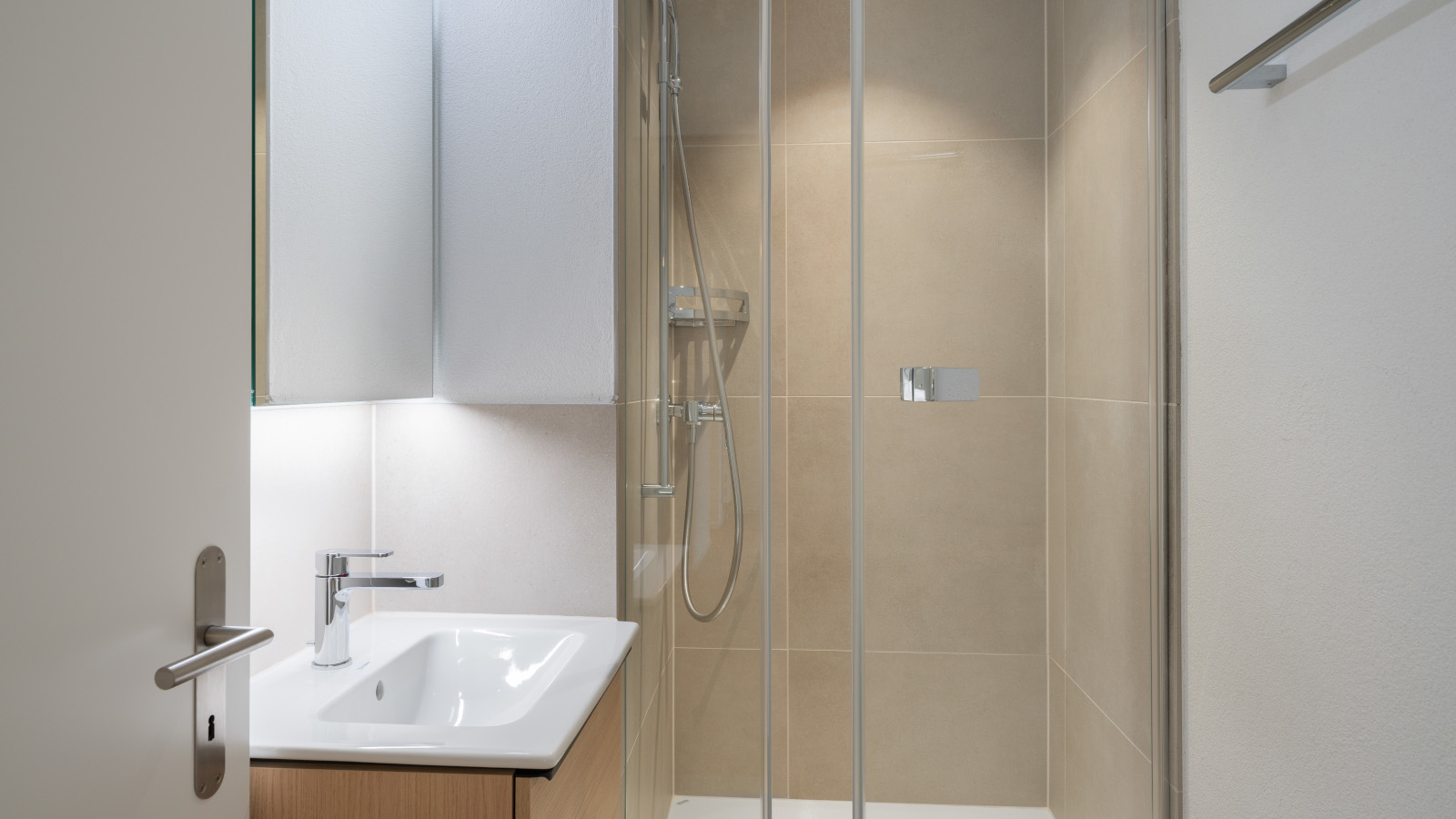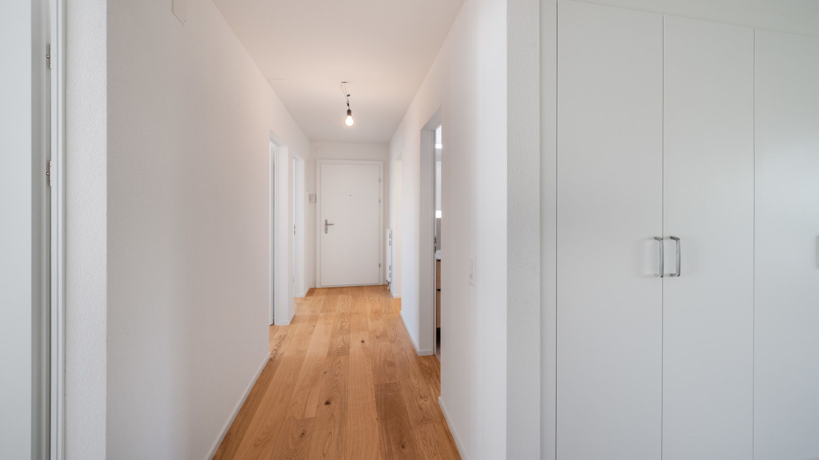 In der Wohnung (ausser in den Nasszellen) wurde ein Eichen-Parkettboden (Landhausdiele) verlegt.